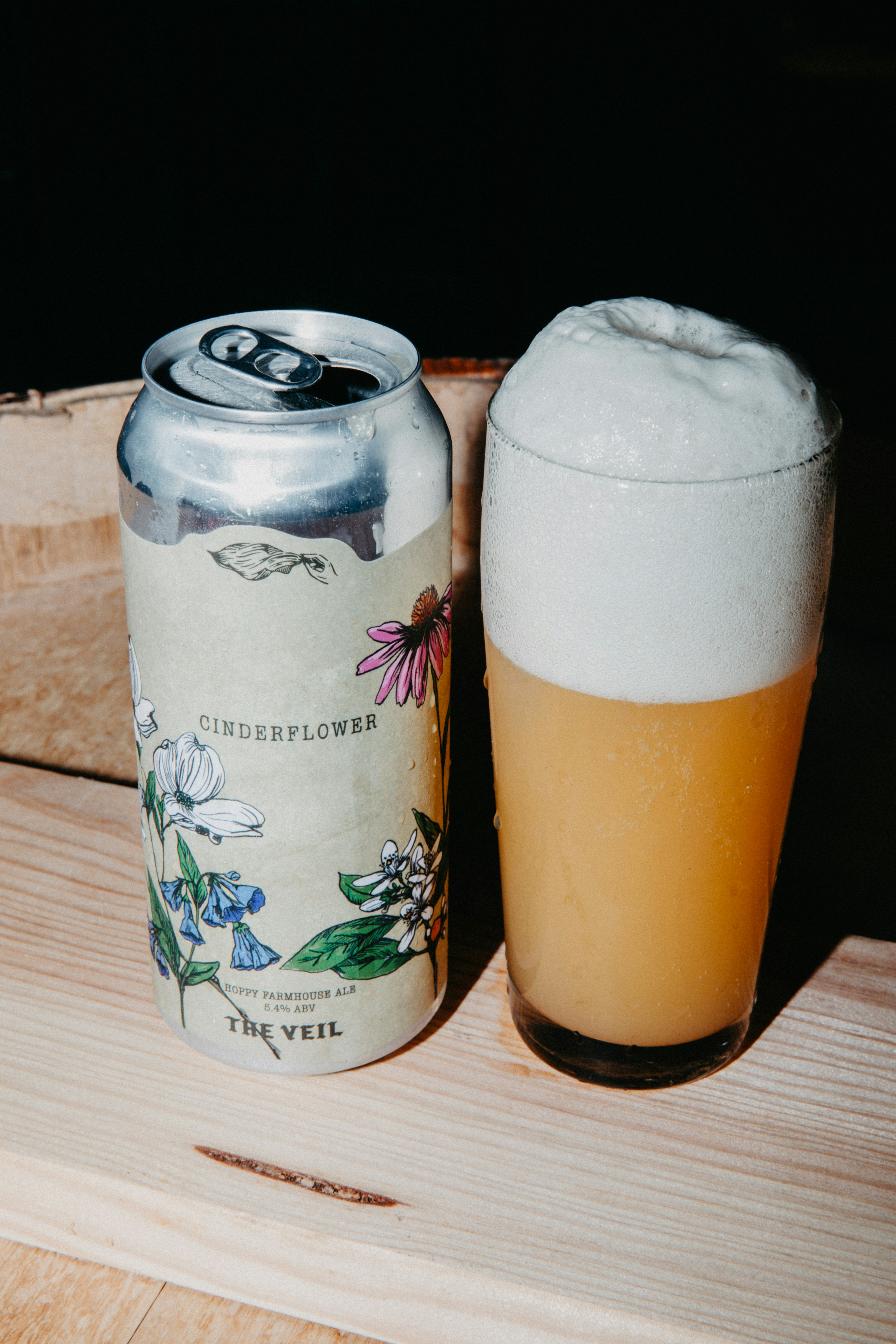 Cinderflower is a hoppy farmhouse-inspired ale brewed with old buds King State. Brewed with Virginia Pilsner malt, malted wheat from Florida, and rye from North Carolina (all via River Bend Malt), then open fermented and dry-hopped with New Zealand Cascade and floral Hallertau Blanc. Dry, effervescent, and bursting with fresh florals and bright tropical fruit—an easy spring crusher. 6.0% ABV