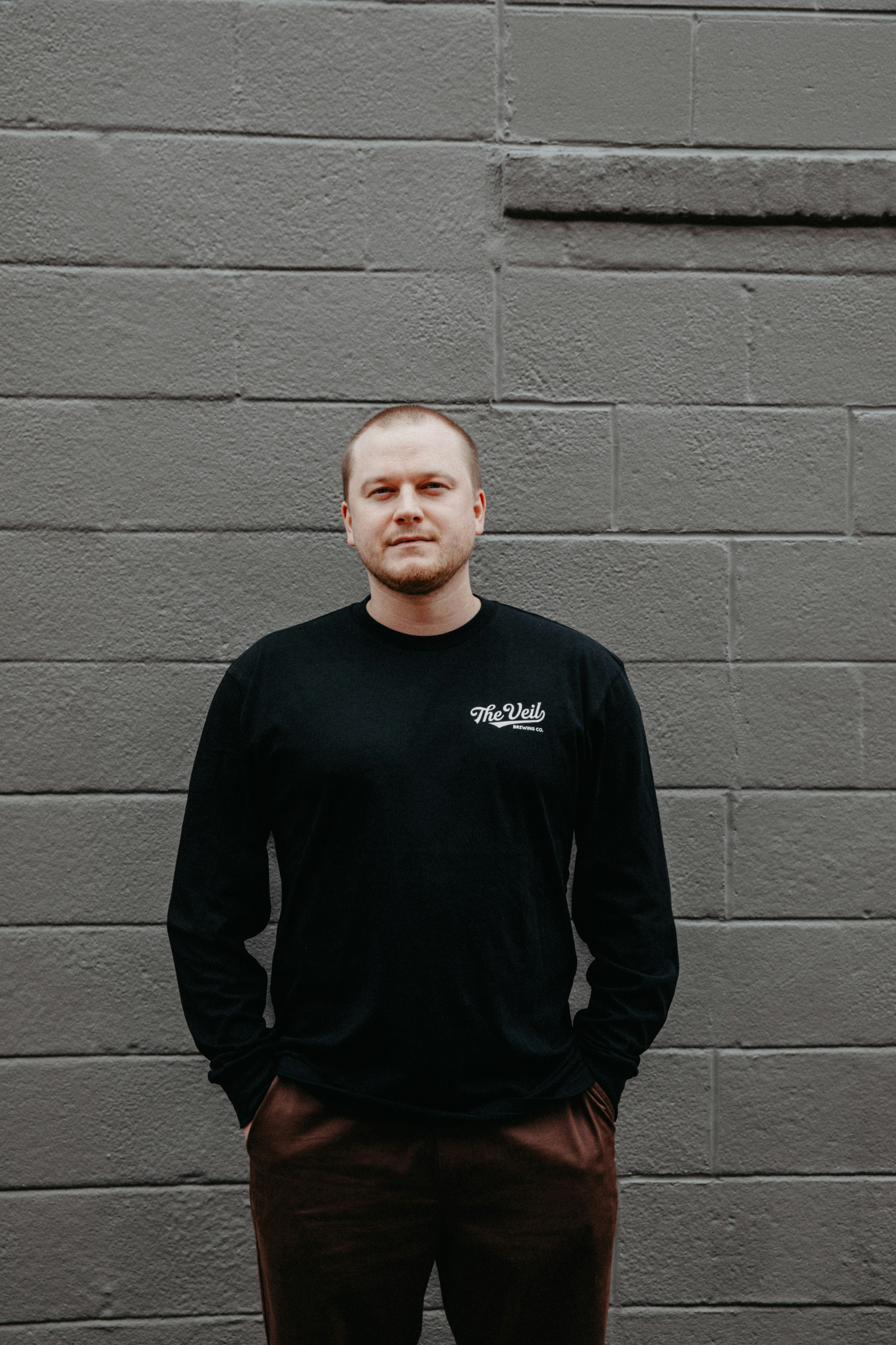 Classic motorcycle against Richmond skyline. Screen printed on black 100% cotton long sleeve tee.