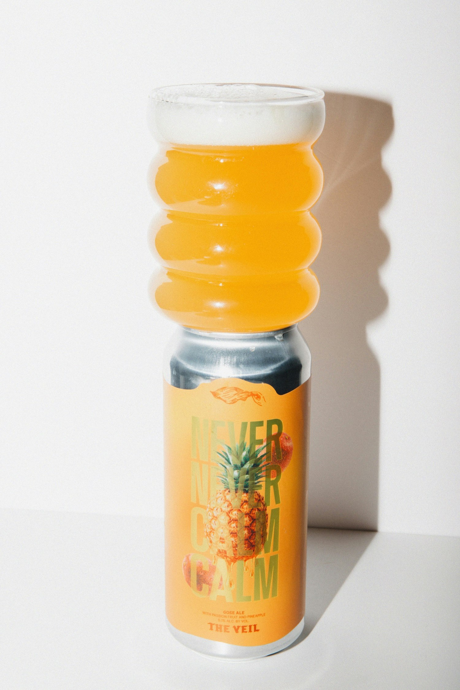 Never Never Calm Calm is a Gose with the awesome fruit combo of double passionfruit and double pineapple. Tasty vibes of canned fruit cups, peach skin, and obviously tons of passion fruit and pineapple. 5.1% ABV