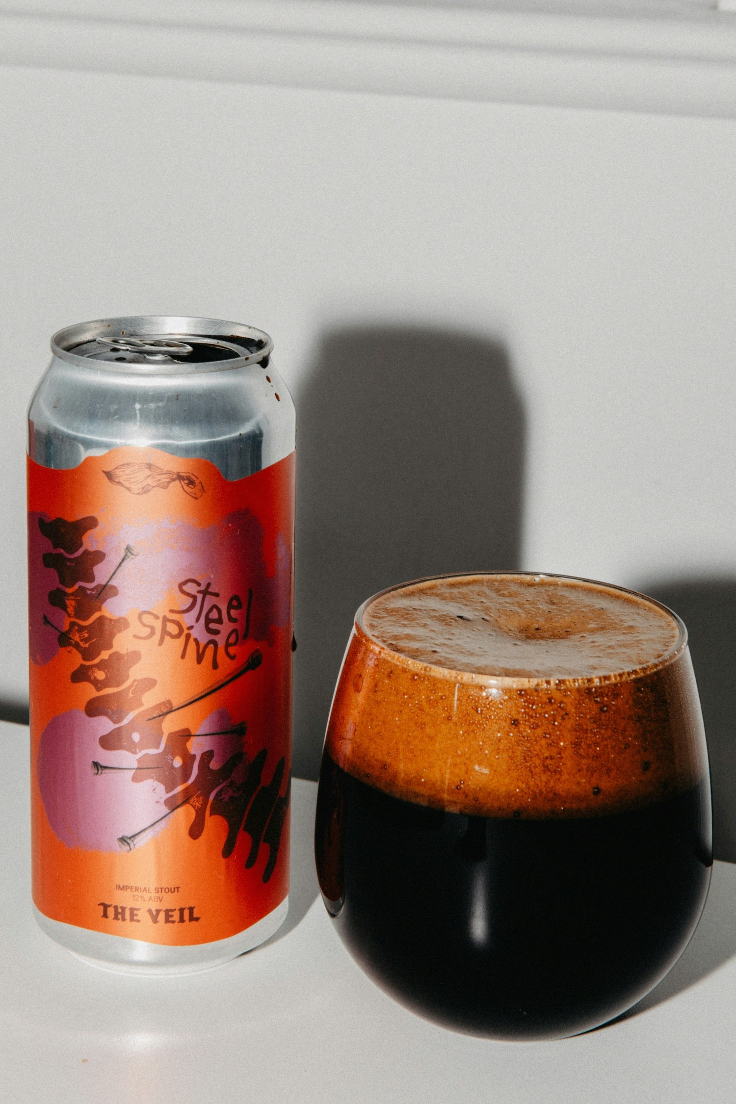 Imperial Stout blended with Bourbon Barrel-Aged Imperial Stout. The sibling to Iron Jaw, Steel Spine has an extremely complex malt profile. Over 13 different malts were used in this beast. Right before packaging, we blend in a few barrels of Bourbon barrel-aged stout aged for 18-30 months to round things out. Viscous and jet black with layered notes of Hershey’s syrup, Vietnamese coffee, Nutella, underbaked brownies, and melty candy bars, followed by an assertive, yet balanced hop and roast presence. This is one of our most crushable Imperial Stouts for the ABV. 12% ABV